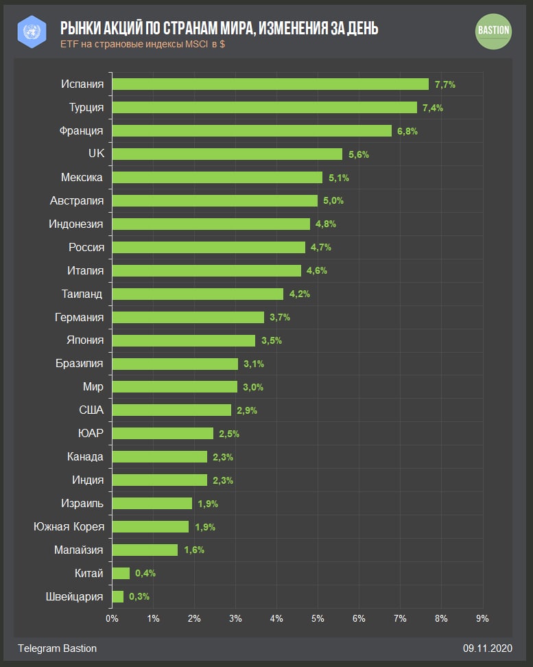 💉Реакция мировых рынков на позитивные данные об эффективности вакцины Pfizer