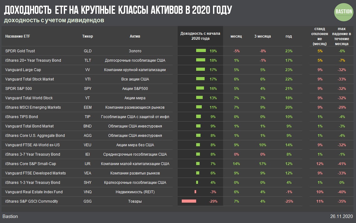 ​​📈Доходность ETF на крупные классы активов в 2020 году