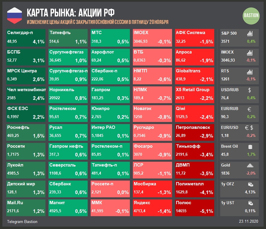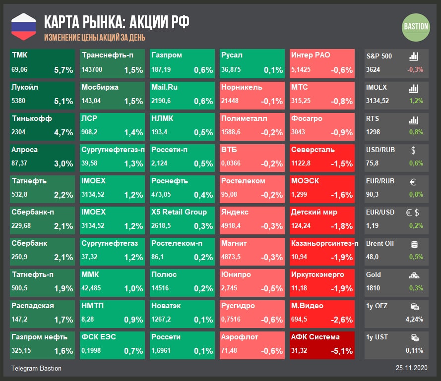 ▫️Аэрофлот и нефтегазовый сектор продолжают рост на фоне увеличения вероятности скорого одобрения вакцины.
