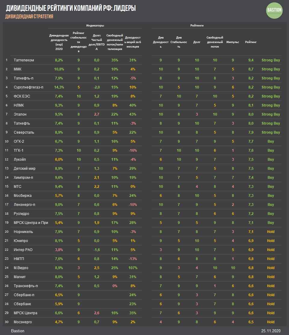 ​​📊 ДИВИДЕНДНЫЕ РЕЙТИНГИ РФ: НОЯБРЬ 2020
