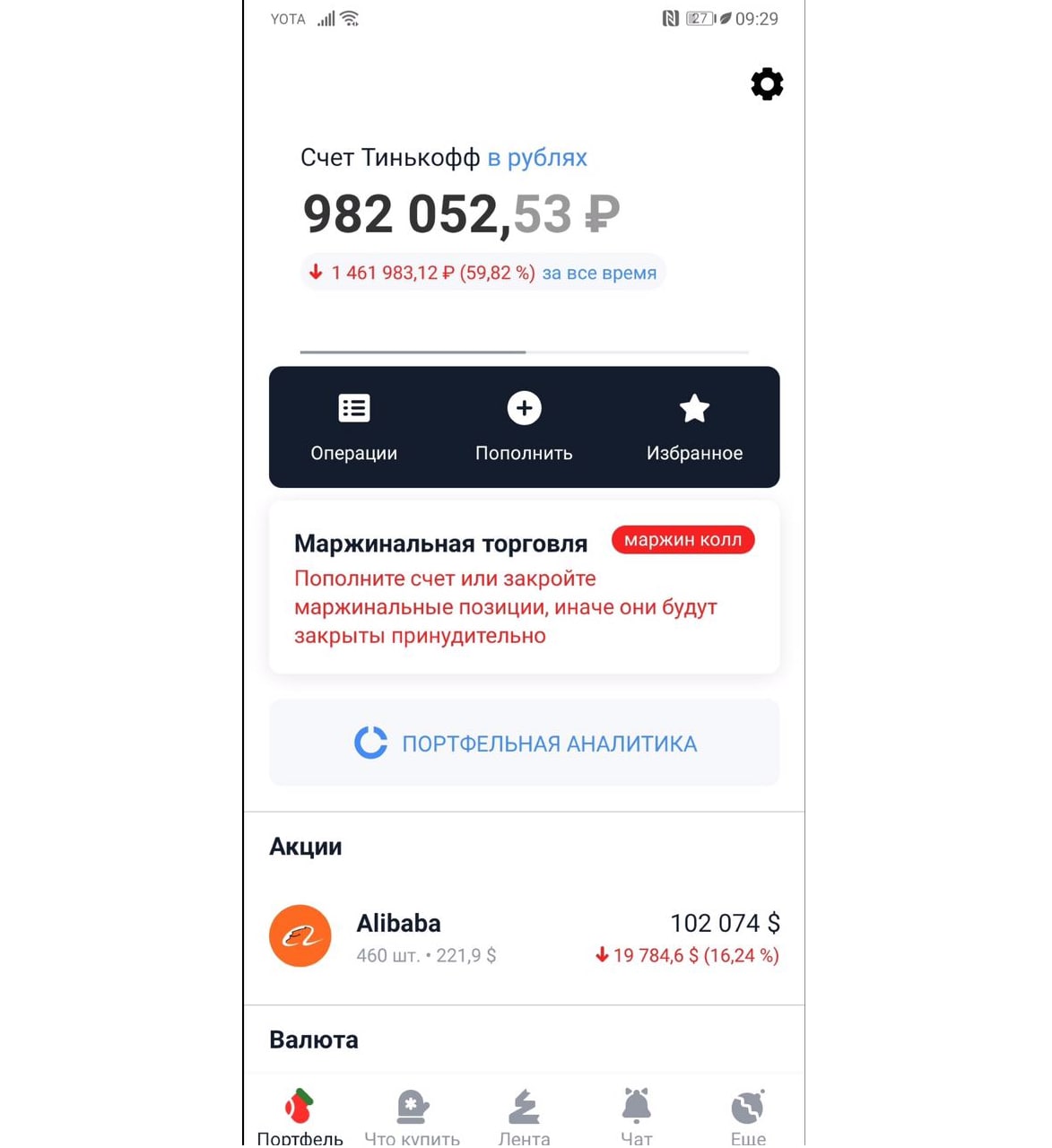 👇Прислали скрин портфеля одного из участников "Пульса". Alibaba в нем не только единственная акция, но и куплена с плечом. Ставить все на одну компанию, используя кредитные деньги - не самая разумная стратегия выживания на рынке. Однако она очень привлекательна для многих неопытных инвесторов. Почему? Обсуждаем в подкасте.