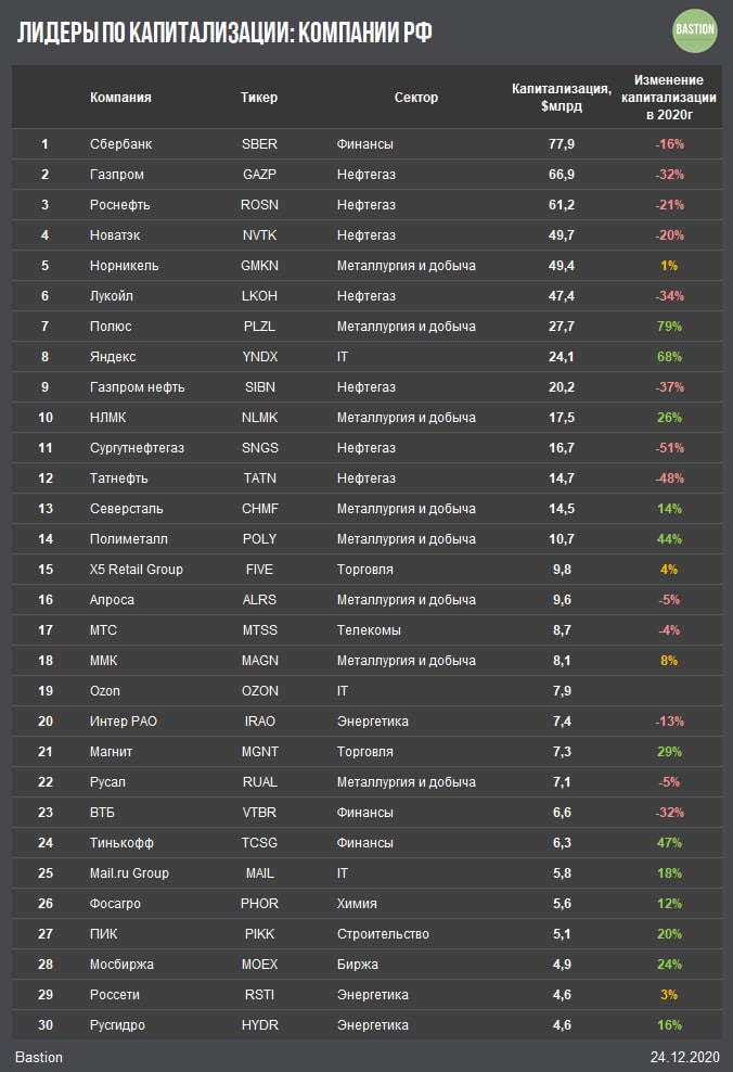 📊Лидеры по капитализации на российском рынке акций ($млрд)