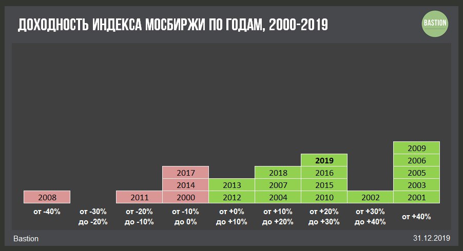 📈 Индекс Мосбиржи по итогам 2019 года вырос на 29,3%, лучший результат с 2009 года