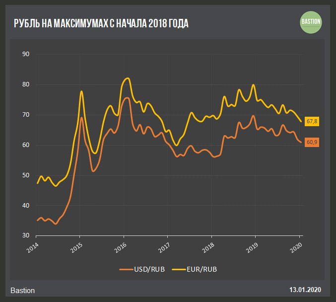 1. Рост цен на нефть. На первой неделе января баррель Brent впервые с сентября 2019 года превысил $70. Хотя цена после этого скорректировалась до $65, это все равно выше средних значений 4 квартала прошлого года.