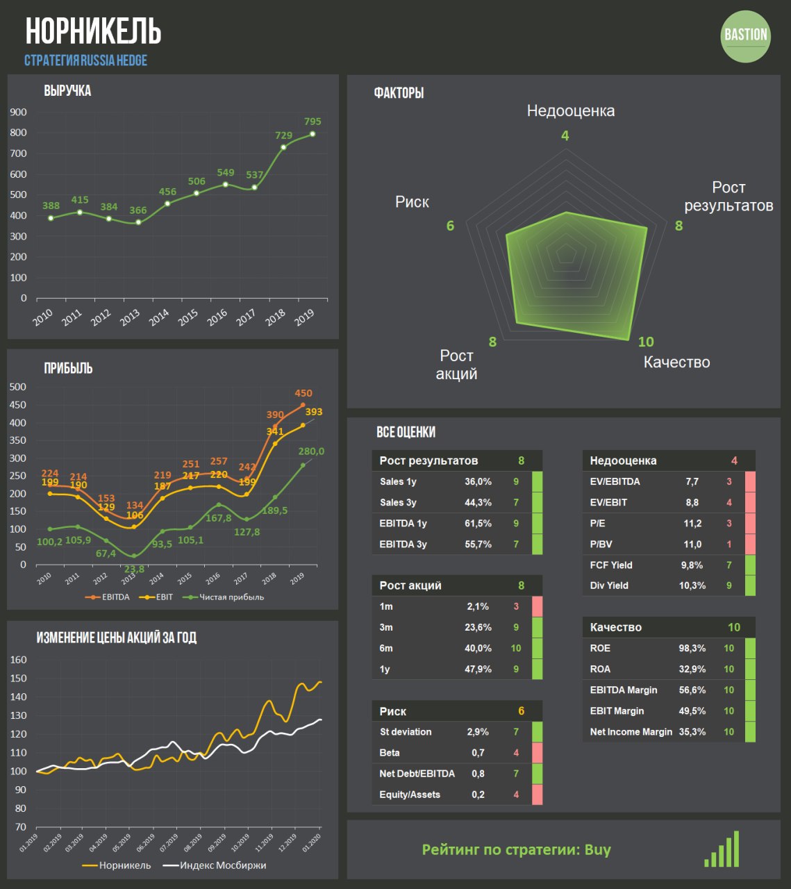 С ожидаемой дивидендной доходностью на уровне 10% Норникель также проходит в портфель по дивидендной стратегии.