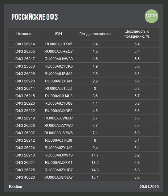 Если ваши акции тоже значительно выросли за последний год, то необходимо вернуть их долю к стратегической, купив больше облигаций. Список государственных облигаций представлен на графике ниже.