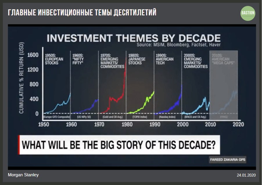 Самые "горячие" инвестиционные активы разных десятилетий по версии Morgan Stanley.