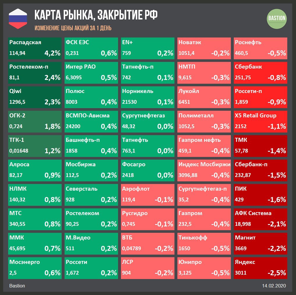 2. Котировки Распадской растут после информации из Коммерсанта, что собственники Evraz купят Сибуглемет у ВЭБ.РФ и возьмут обслуживание долга в $3,5 млрд. Ранее Ведомости сообщали о возможном совместном предприятии Сибуглемета и Распадской. ⛏