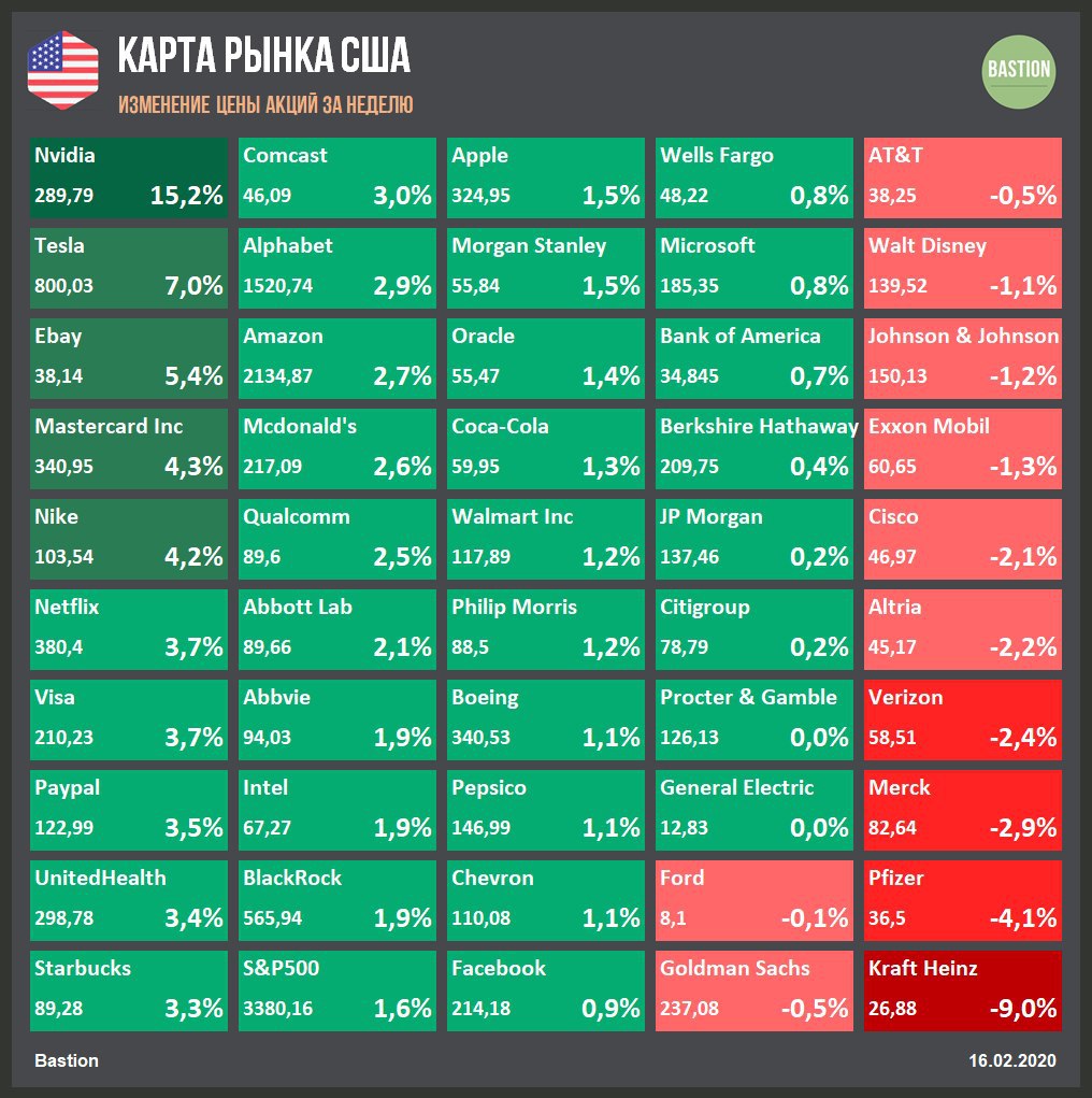 🕹 Nvidia +15,2%: Выручка ведущего мирового производителя графических чипов в 4 квартале выросла на 41% г/г за счет роста доходов от основного игрового бизнеса и увеличения продаж решений для крупных дата-центров. Чистая прибыль выросла в 1,7 раза.