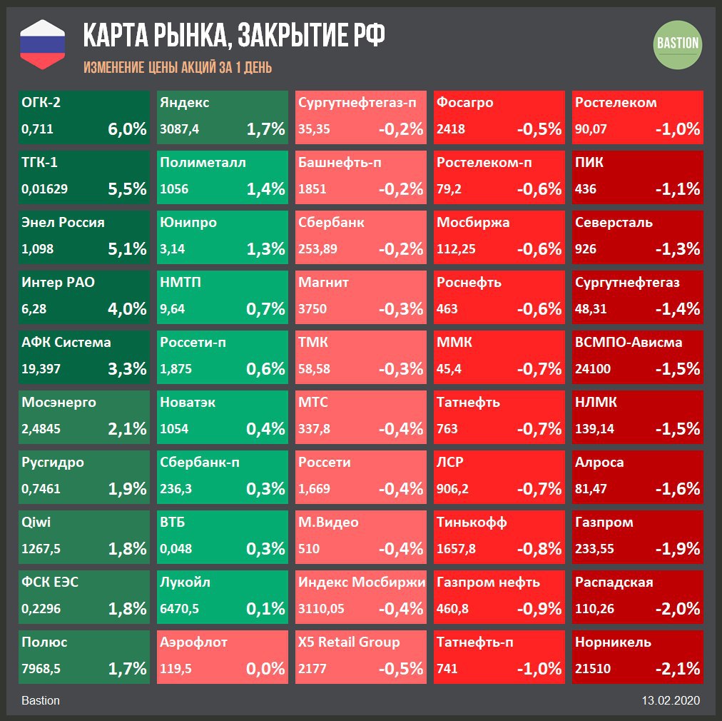 ⚡️ ОГК-2 и ТГК-1 +24,4% и +23,9%: генерация Газпромэнергохолдинга оказались в лидерах роста после обещания Газпрома, что дочки компании заплатят дивиденды в 50% от прибили по МСФО уже в 2020 году. Если обещания будут исполнены, то див доходность ОГК-2 и ТГК-1 составит около 9% и 10% соответственно, выше среднего для российского рынка акций.