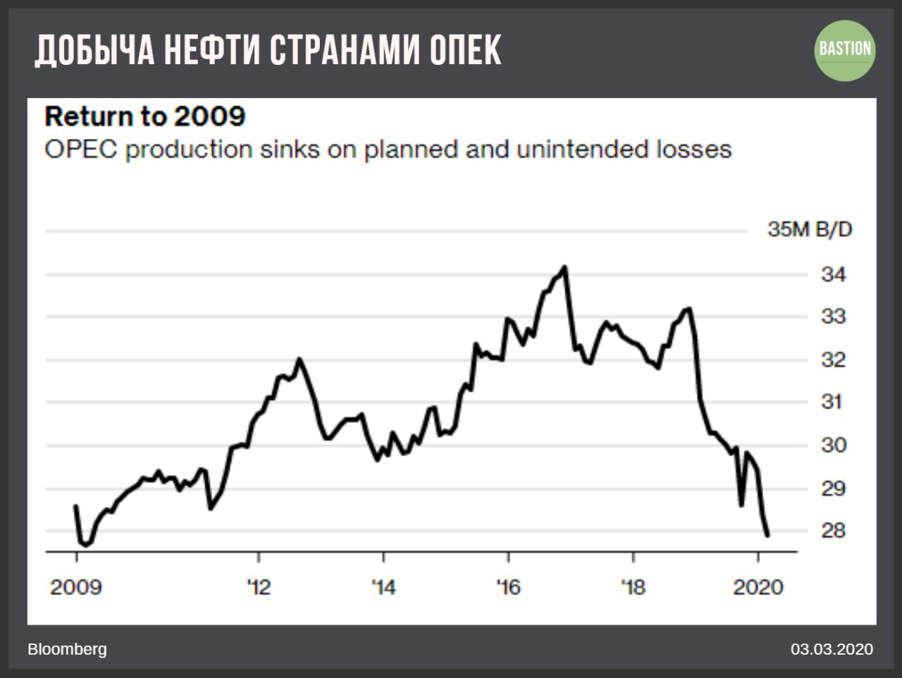 🛢 Добыча нефти странами ОПЕК на минимуме с 2009 года.