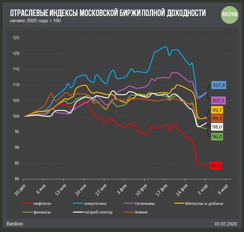 🛢 Нефтегазовый сектор значительно хуже рынка в 2020 году