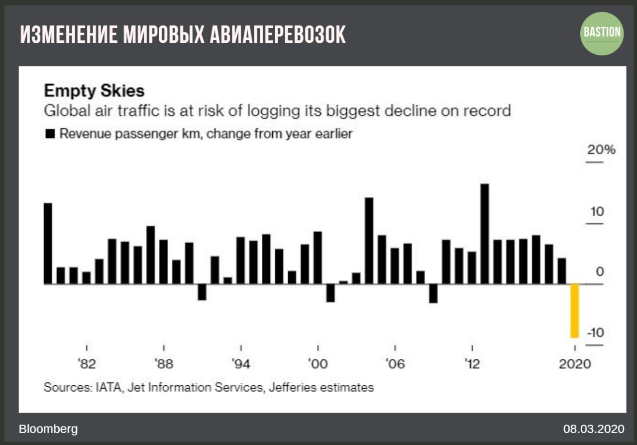 🛬 Аэрофлот -8,2%. Мировые авиакомпании готовятся к кризису из-за отмены авиарейсов после распространения коронавируса. Вряд ли ситуация долгосрочно повлияет на привлекательность Аэрофлота, но краткосрочно весь сектор похоже ждет дальнейшее падение.