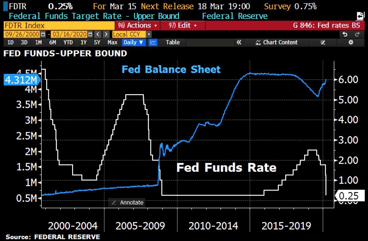 ▪️Федеральная резервная система США экстренно снизила ставку на 1% до уровня в 0-0,25%.