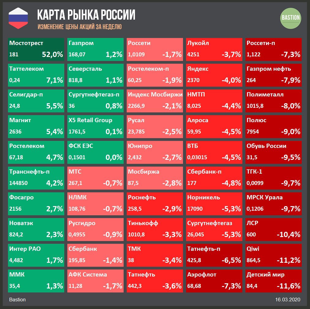 🛡 Защитными акциями оказались Акрон и префы Сургутнефтегаза. Акрон выиграет от роста экспортной выручки от продажи удобрений в рублях за счет снижения курса. Держателей префов Сургутнефтегаза похоже вновь будут ждать дивиденды с двузначной доходностью по итогам 2020 года благодаря переоценке валютных депозитов.