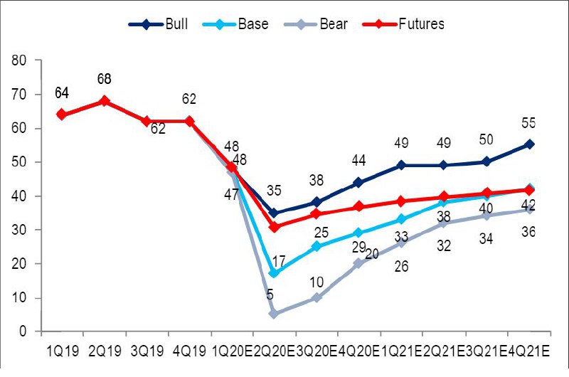 ​​🛢️ Citi: средняя цена на нефть во втором квартале в базовом сценарии $17, в медвежьем - $5.