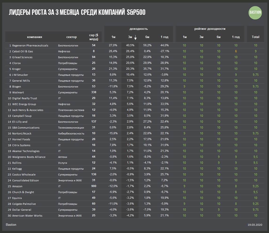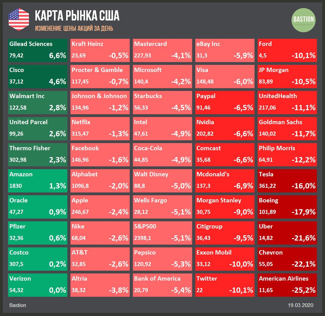 С начала 2020 года индекс S&P500 потерял около 26%, что стало рекордным снижением с кризиса 2008 года. 95% акций индекса за последние 3 месяца показали убыток. Всего 21 компании удалось сохранить стоимость.