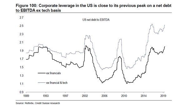 💸Долговая нагрузка компаний США перед кризисом находилась близко к исторически рекордным уровням. Коэффициент "Чистый долг/EBITDA" в 2019 году превышал 2x, что выше значений 2008 года.