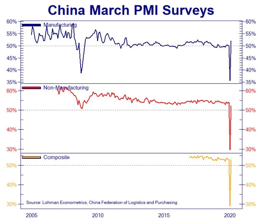 Индекс деловой активности (PMI) сектора услуг Китая в марте на фоне улучшения эпидемической ситуации в стране повысился на 22,7 пунктов, до 52,3 пунктов. Значения выше 50 указывают на рост деловой активности.