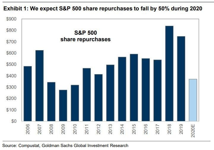 🇺🇸 💸 Goldman: объем выкупа акций американскими компаниями упадет на 50% в 2020 году