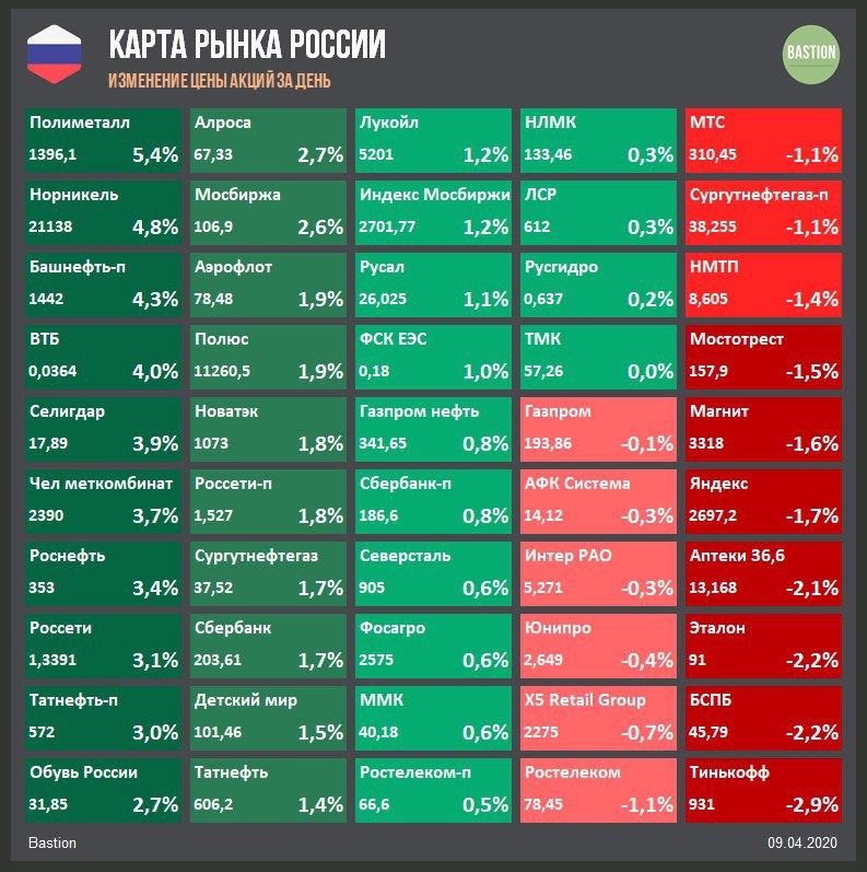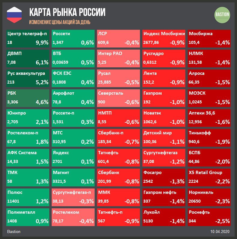 🔹 Страны ОПЕК+ в заявлении подтвердили намерение снизить нефтедобычу в мае-июне на 10 млн баррелей в сутки. Это минимальный уровень сокращения, который ожидал рынок по итогам видеоконференции, поэтому нефть марки Brent закончила четверг снижением почти на 6% до $31,8.
