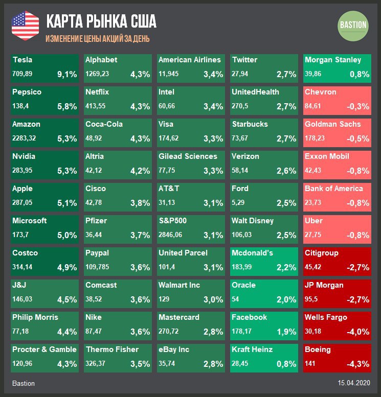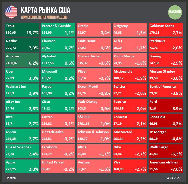 Седьмой день роста подряд. Вчера рейтинг компании с "хуже рынка" до "нейтрального" подняли в Credit Suisse. Аналитики банка пишут о краткосрочном коллапсе автомобильной отрасли из-за кризиса и долгосрочном переходе к электромобилям. С их точки зрения, Tesla, в отличие от других представителей сектора, хотя бы соответствует долгосрочному тренду.