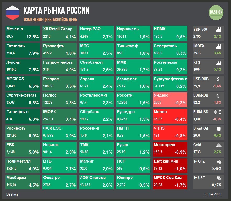 ​​Итоги РФ: Мечел продолжает биться за выживание, Brent дороже $20 уже как позитив