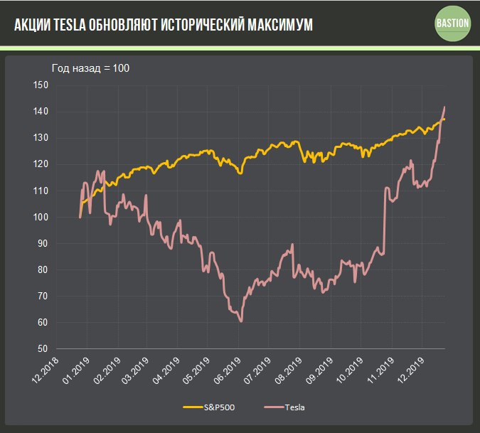 ▫️В 4 квартале 2019 года акции Tesla начали стремительное восстановление, прибавив за неполные 3 месяца более 70%.
