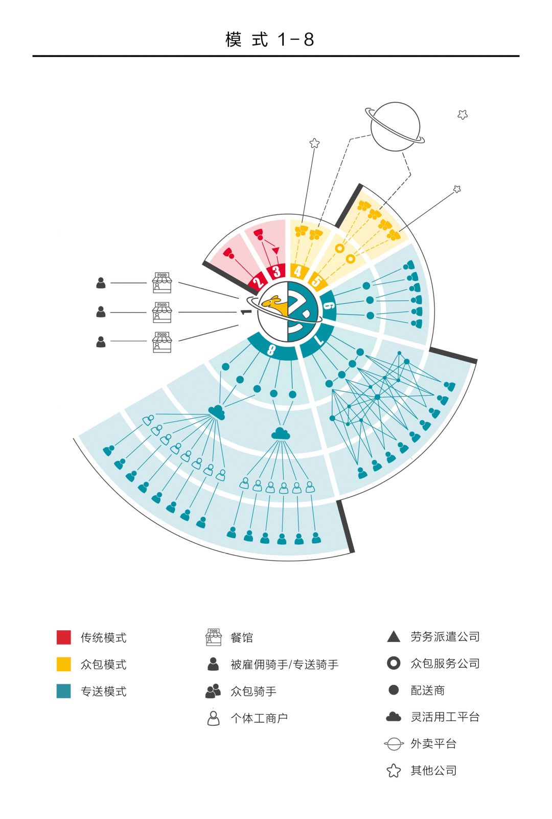 通过研究自外卖平台出现以来的1900+份有关外卖骑手确认劳动关系的司法判决,按照外卖平台的发展时间线整理出外卖平台上陆续出现的8种主要用工模式,尽最大可能复盘了整个演进过程。