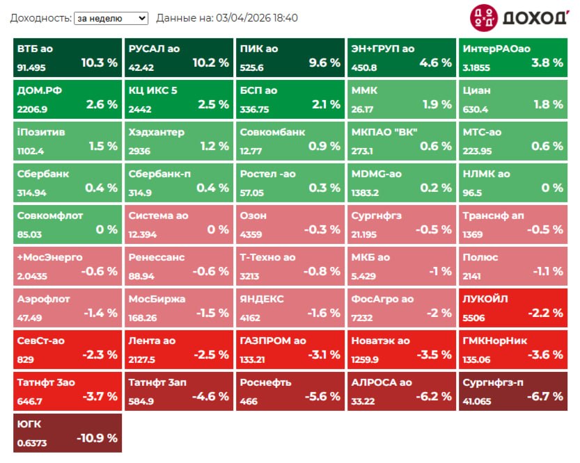 Итоги среди компаний, входящих в индекс Мосбиржи: