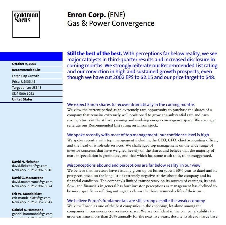 В течение следующих 2 месяцев компания потеряла более 99% капитализации. 2 декабря 2001 года было объявлено о банкротстве Enron.