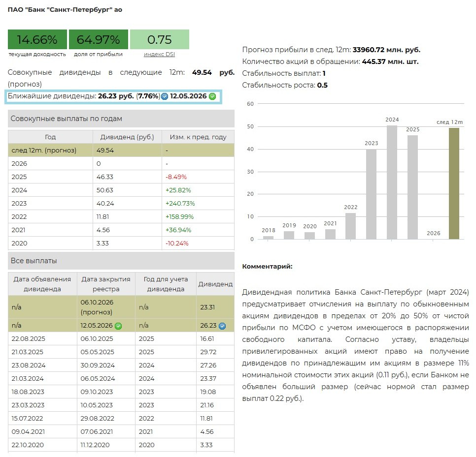 💰 Банк Санкт-Петербург – дивиденды