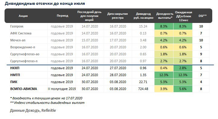 Совет директоров Полюса рекомендовал дивиденды за 2 полугодие 2019 года в размере 244,75 рублей на акцию (+70% г/г). Дивидендная доходность к текущим ценам 1,8%. Дата закрытия реестра: 28 августа.