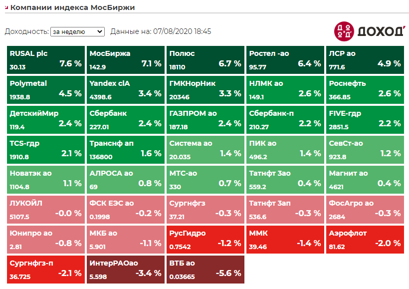 Акции Walt Disney по итогам недели оказались в лидерах роста. Во вторник компания сообщила, что ее сервис Disney +, запущенный в ноябре, уже насчитывает 60,5 млн подписчиков - на четыре года раньше запланированного срока. Disney также заявила, что выпустит дважды отсроченную премьеру «Мулан» через Disney +, которая задерживалась из-за закрытия кинотеатров.