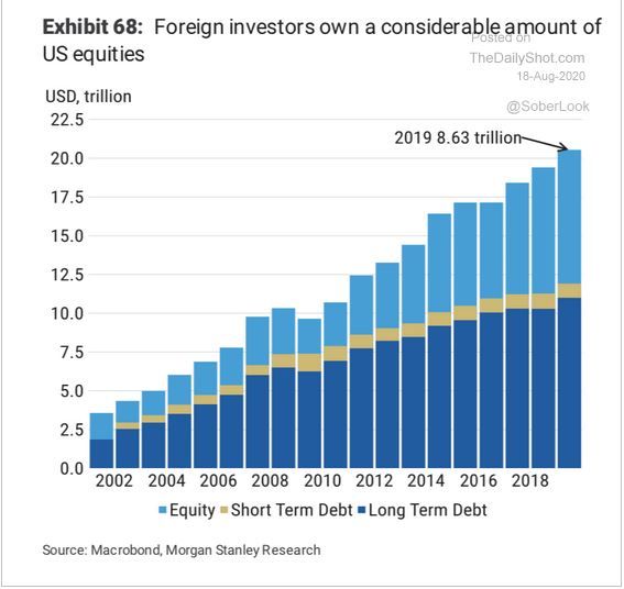 ​​Объем иностранных инвестиций в различные активы в США (Equity - акции, Short Term Debt - краткосрочный долг, Long Term Debt - долгосрочный).