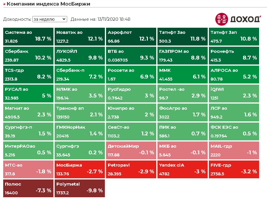 Итоги недели среди компаний индекса Мосбиржи:
