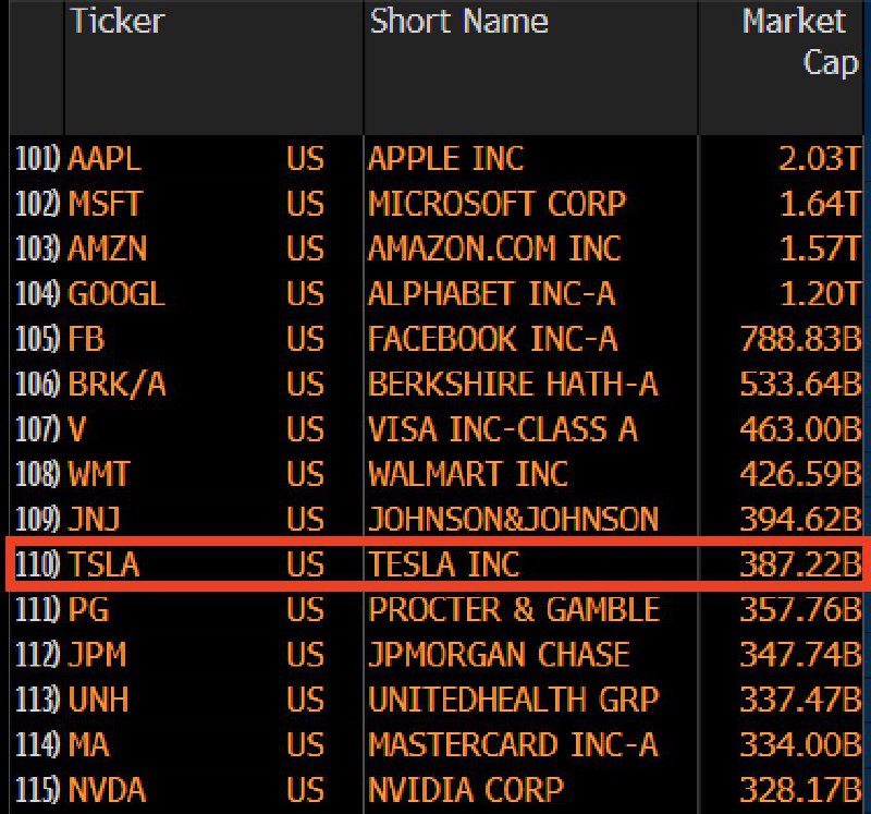 Это будет крупнейшее в истории индекса изменение. Акции Tesla, оцениваемые сейчас в $390млрд. (больше, чем 95% всех компаний, входящих в индекс) могут занять 1% в индексе. Это означает, что фонды, следующие ему должны будут продать другие акции на $51 млрд., чтобы потратить эти деньги на покупку бумаг Tesla.