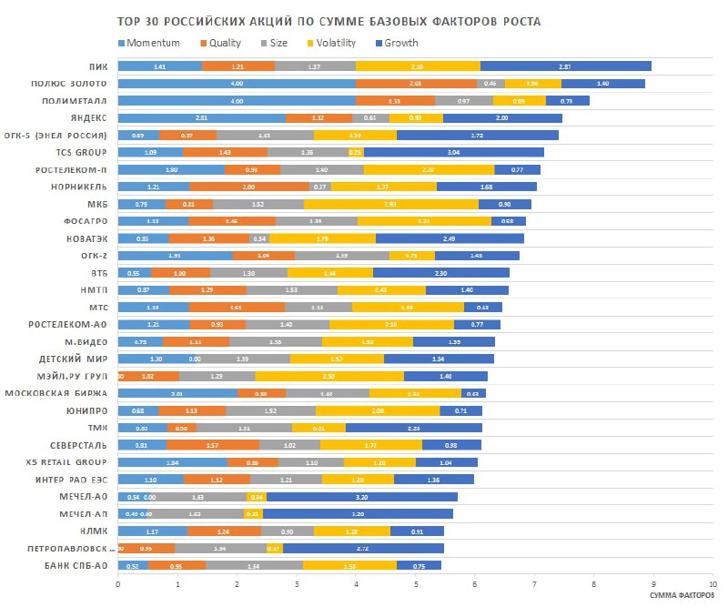 Каждый из этих факторов стандартизируется так, чтобы значение 1 (единица) означало среднее значение по рынку. Значение выше единицы означает, что данная характеристика акции выше (лучше) среднего по рынку и наоборот.