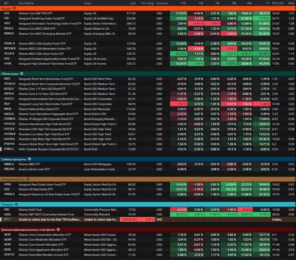Для справки приведем состав портфелей с распределением активов по классам. По ссылкам вы найдете их подробное описание и возможности их сравнения с другими подобными портфелями.