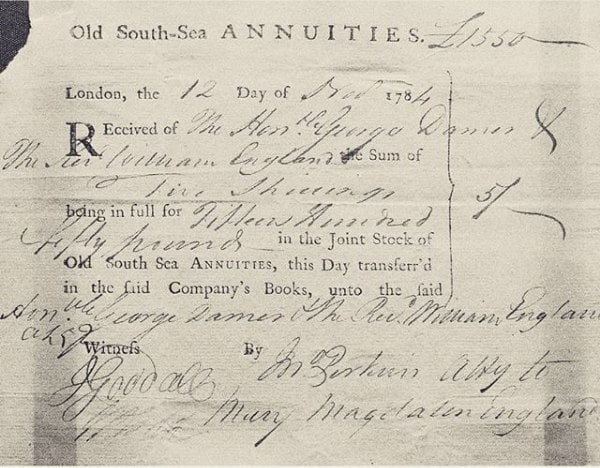 Самым старым долгом внутри этих облигаций является правительственная помощь, оказанная после краха Компании Южных морей, вызванного паникой на фондовом рынке в 1720 году.