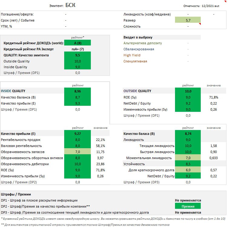 🟢Общее качество эмитента - "Высокое" (9.5/10) – Общая бизнес модель компании стабильна. Отличная комбинация эффективности и долговой нагрузки. Проблемы с диверсификацией активов.