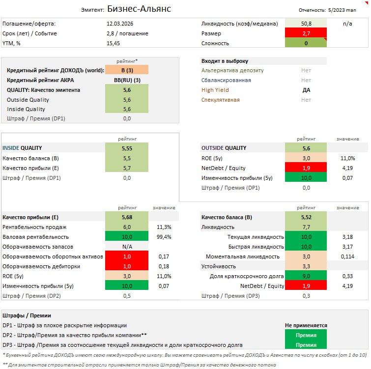 🔗 Подробно о том, как мы рассчитываем Качество эмитента можно прочитать в этом посте