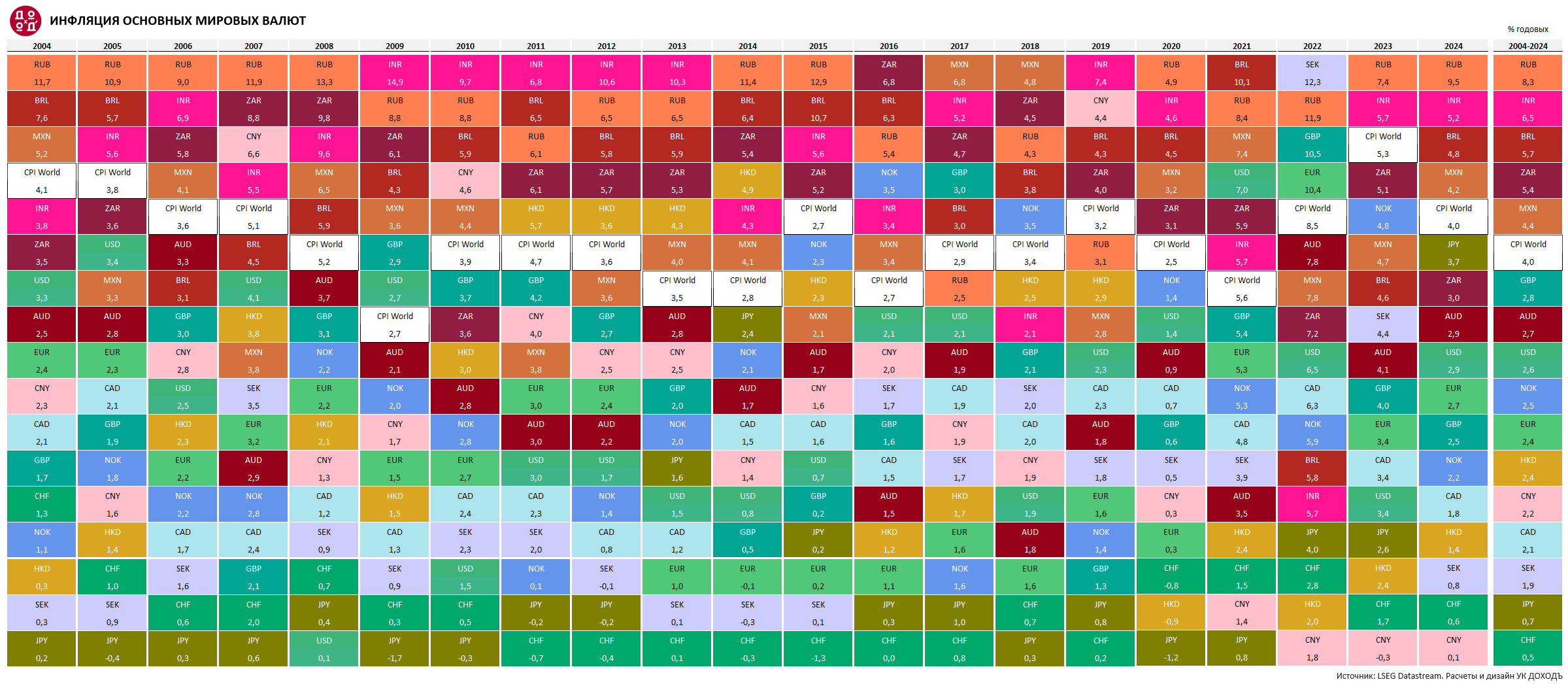 ▪️ От Сингапура до России. Доходности глобальных рынков акций в USD, 2004-2024