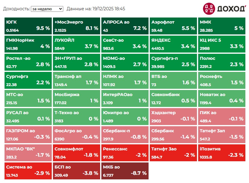 Итоги недели среди компаний индекса Мосбиржи: