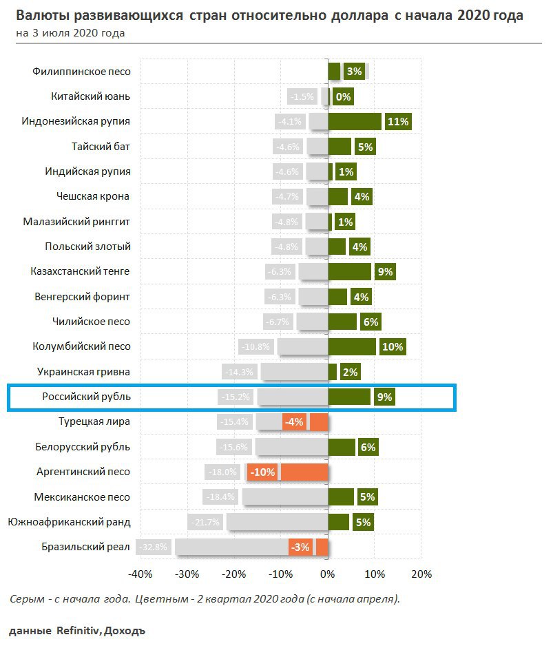 ​​🌍 Большинство валют развивающихся стран укрепились к $ во 2 квартале 2020 года