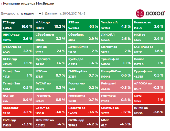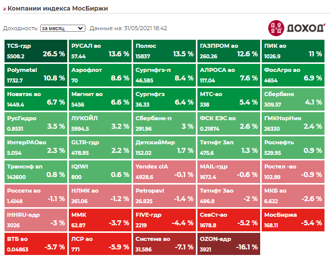 Итоги мая среди компаний индекса Мосбиржи: