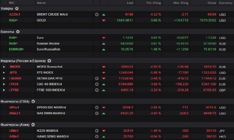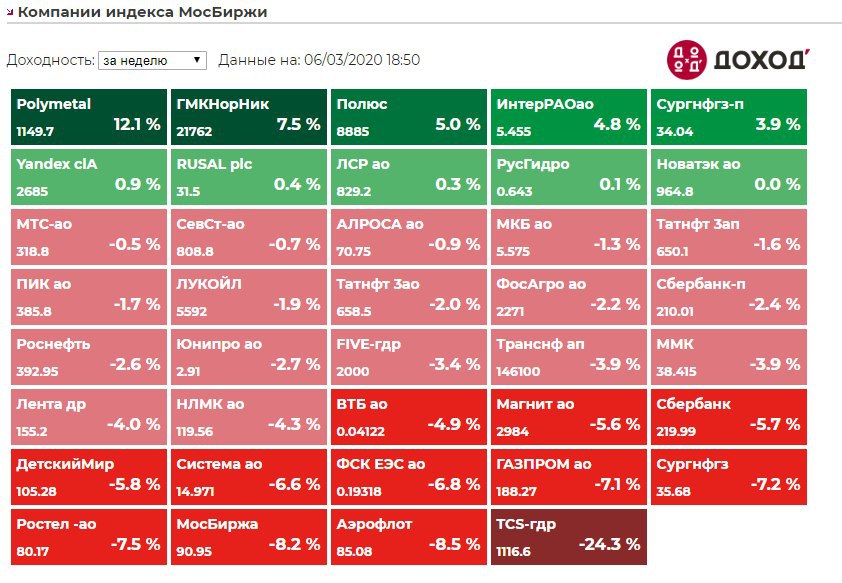 Стратегически же, попытки поддержки цен через картельные соглашения снижают долю России и стран ОПЕК на глобальном рынке и балансировка рынка (через сокращение добычи в США) выгодно для всех. А с точки зрения России, видимо, наступил тот самый удобный момент. При этом не будет удивительным и некий промежуточный компромисс в ближайшие дни, особенно, если ситуация с коронавирусом продолжит усугубляться.
