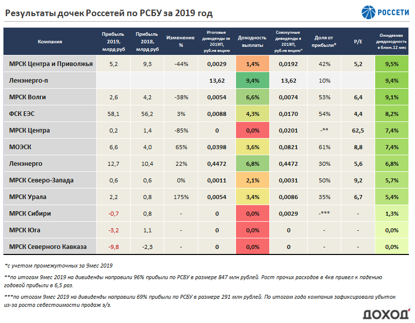 🔌 Результаты дочек Россетей по итогам 2019 года по РСБУ