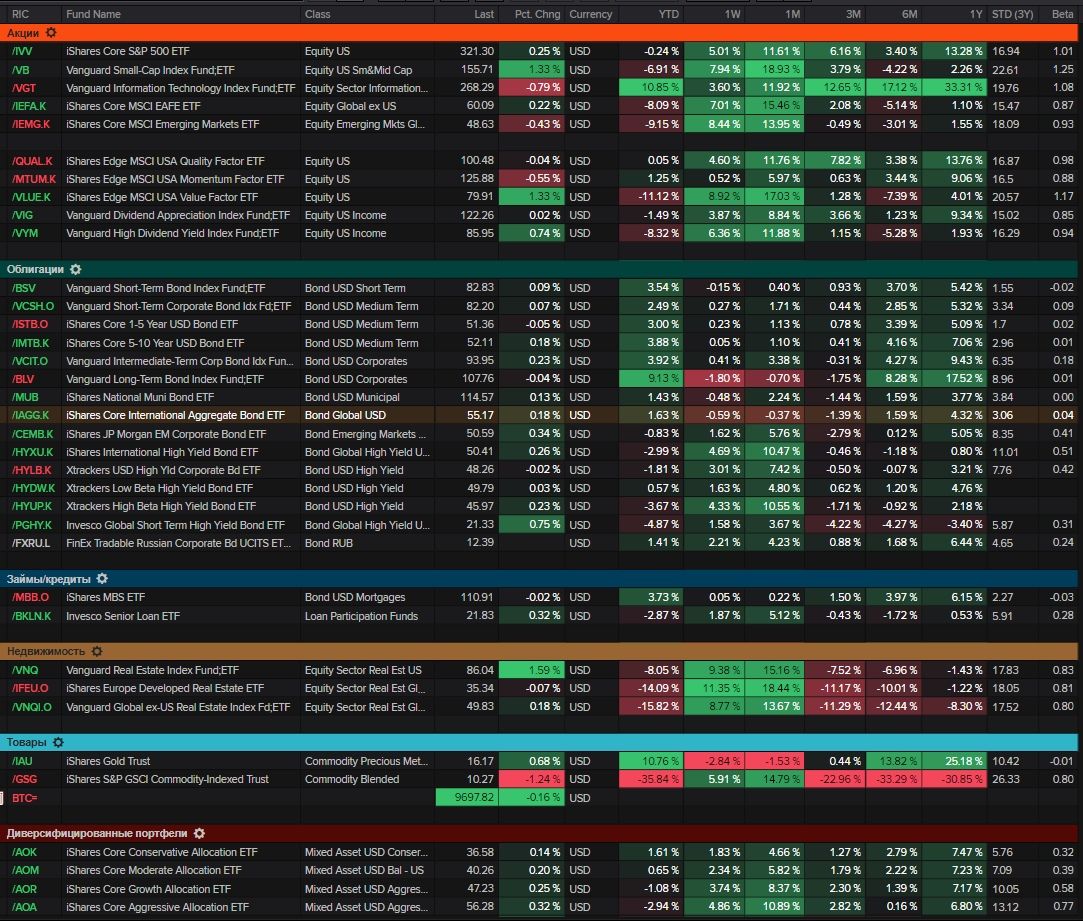Глобальные классы активов. Продолжается рост в "активах аутсайдерах" - наиболее пострадавших от текущего кризиса - акциях компаний малой капитализации (small cap) и акциях ценности (value). Сектор высокодоходных облигаций (high yield) также быстро восстанавливается, особенно low beta сегмент (вышел в плюс с начала года).