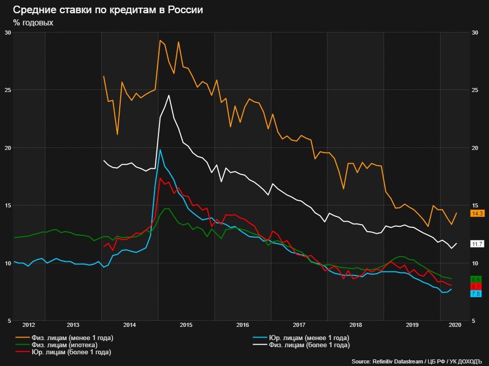Последние пять лет были самыми плодотворными в современной истории для тех, кто осуществлял консервативные сбережения. Накопленная реальная (после инфляции) доходность составила почти 50%. Ожидаемое смягчение денежной политики Банка России даст этой ситуации продолжится еще 1-1.5 года, после чего ставки и ожидаемая доходность сильно приблизятся к уровню инфляции.